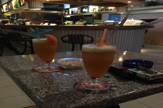 Restaurant bar that serves cocktails, snacks, breakfast and meals all the day long.........